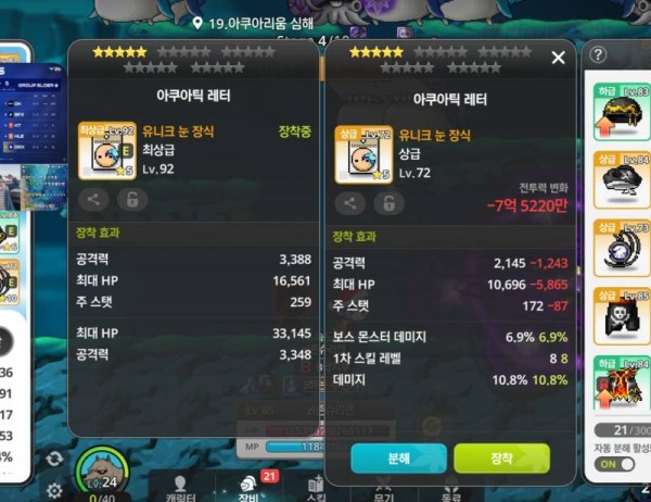 👉 아이템 : '물컹물컹한 반지' 비교 결과, 오른쪽을 추천합니다! 🔍 🔥 오른쪽 : 총 공격력 3,722, 2차 스킬 레벨 🔍 왼쪽 : 총 공격력 3,722, 보스 몬스터 데미지 4.7%, 일반 몬스터 데미지 5%, 명중 6 💡 분석 코멘트 양쪽 반지의 총 공격력은 동일하지만, 오른쪽 반지에 붙은 2차 스킬 레벨 옵션이 더 유용합니다. 쪼렙 구간에서는…