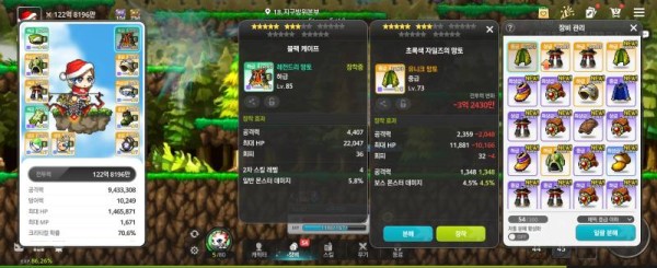 왼쪽 아이템이 총 공격력도 높고, 일반 몬스터 데미지까지 붙어있어서 사냥에 훨씬 도움이 될 거예요! 오른쪽 아이템의 보스 몬스터 데미지도 나쁘진 않지만, 지금은 닥사냥이 더 중요하니까 왼쪽으로 갑시다!