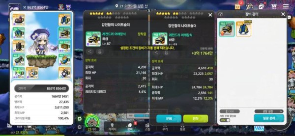 총 공격력은 오른쪽이 높지만, 크리티컬 데미지가 아쉽네요. 그래도 종합적으로 봤을 때 오른쪽 아이템이 조금 더 나아 보입니다.