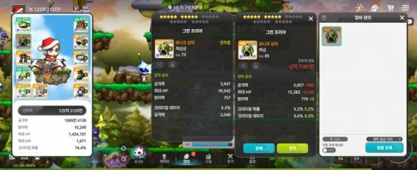 🔍 오른쪽 : 총 공격력 3,057, 크리티컬 확률 5.2%, 크리티컬 데미지 5.6%