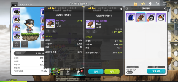 🔍 왼쪽 : 총 공격력 425, 크리티컬 확률 3.2%
