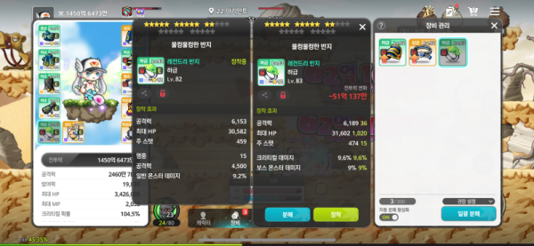🔥 오른쪽 : 총 공격력 6,225, 크리티컬 데미지 9.6%, 보스 몬스터 데미지 9%