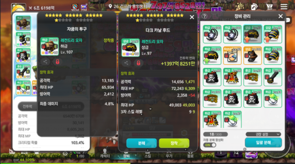 다크 카날 후드는 3차 스킬 레벨이 붙어있어 자쿰의 투구보다 훨씬 좋습니다. 최종 데미지로는 스킬 레벨을 따라올 수 없습니다.