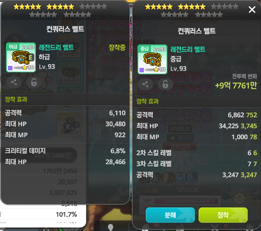 👉 아이템 : '컨쿼러스 벨트' 비교 결과, 오른쪽을 추천합니다!
