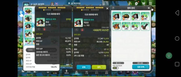 왼쪽 : 크리티컬 데미지 8.8%, 일반 몬스터 데미지 8.6%
