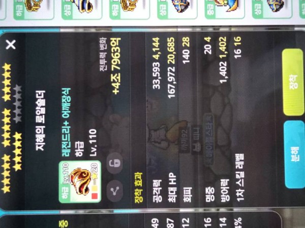 총 공격력은 오른쪽이 높지만, [크리티컬 확률]이 붙은 왼쪽 숄더가 최종적으로 더 좋습니다. 쪼렙존에서는 크리티컬이 깡패거든요!