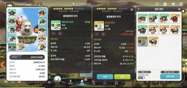 왼쪽 반지는 최대 데미지 배율이 붙어있어, 오른쪽 반지보다 훨씬 강력합니다. 크리티컬 관련 옵션은 좋지만, 최대 데미지 배율을 따라오긴 힘들죠.