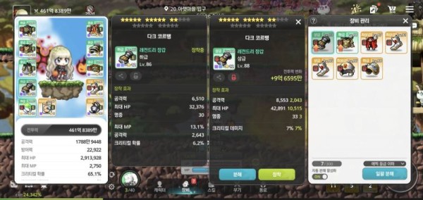 오른쪽 아이템은 [크리티컬 데미지] 옵션이 붙어있어 왼쪽보다 훨씬 강력합니다. 크리티컬 데미지는 공격력보다 훨씬 중요한 옵션입니다.