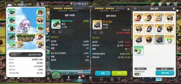 🔍 🔥 왼쪽 : 총 공격력 6,605, 보스 몬스터 데미지 6.8%