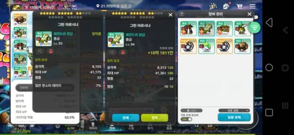 왼쪽 : 총 공격력 8,193, 일반 몬스터 데미지 7%