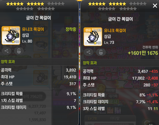 👉 아이템 : '금이 간 목걸이' 비교 결과, 왼쪽을 추천합니다!