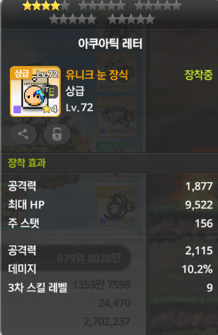 왼쪽 : 총 공격력 2,115, 데미지 10.2%, 3차 스킬 레벨 9