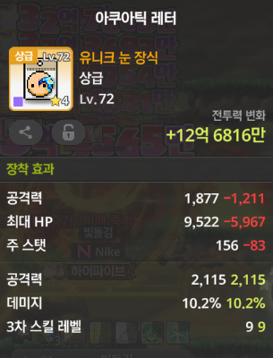 🔥 오른쪽 : 크리티컬 데미지% 8.1%, 총 공격력 3,088