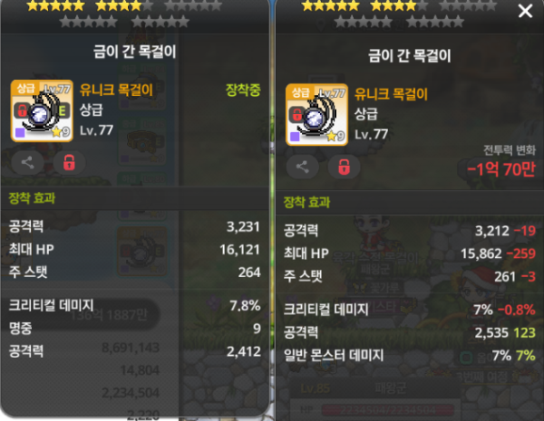👉 아이템 : '금이 간 목걸이' 비교 결과, 오른쪽을 추천합니다!
