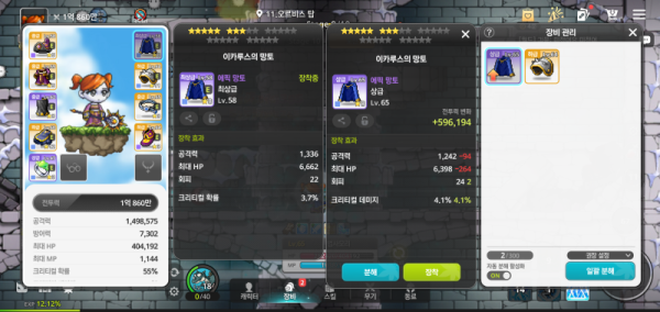 👉 아이템 : '이카루스의 망토' 비교 결과, 오른쪽을 추천합니다!