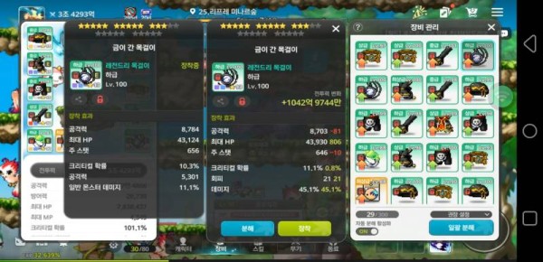 왼쪽 : 총 공격력 8,784, 크리티컬 확률 10.3%, 일반 몬스터 데미지 11.1%