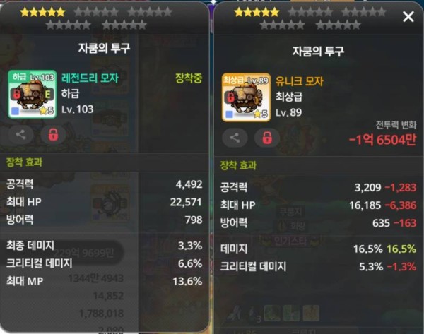 👉 아이템 : '자쿰의 투구' 비교 결과, 오른쪽을 추천합니다!