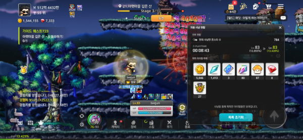 - 획득 경험치: 0.573% (13.428% - 12.855%)