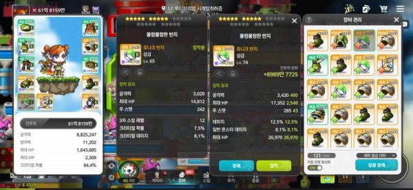 왼쪽 : 3차 스킬 레벨, 크리티컬 확률, 크리티컬 데미지 8.1%, 총 공격력 3,020