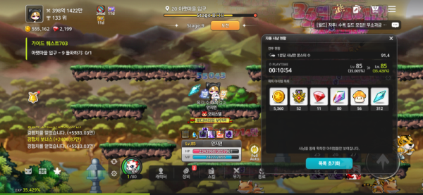 - 획득 경험치: 35.005% -> 35.428% (0.423% 획득)