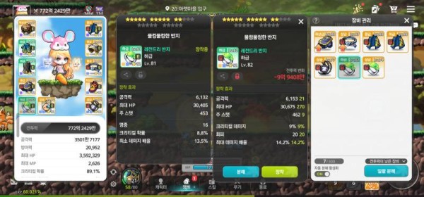 오른쪽 반지는 크리티컬 데미지 옵션이 붙어있어 효율이 훨씬 좋습니다!