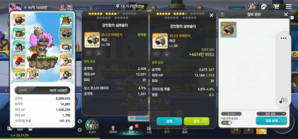 🔍 왼쪽 : 총 공격력 2,428, 보스 몬스터 데미지 4.5%