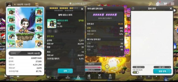 🔍 왼쪽 : 총 공격력 7,311, 최종 데미지 3%
