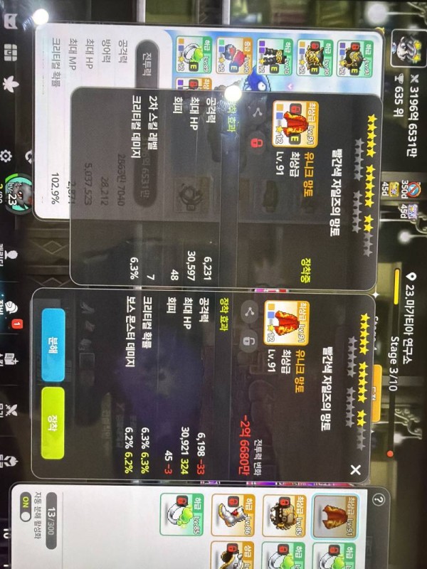 🔍 왼쪽 : 총 공격력 6,231, 보스 몬스터 데미지 6.2%