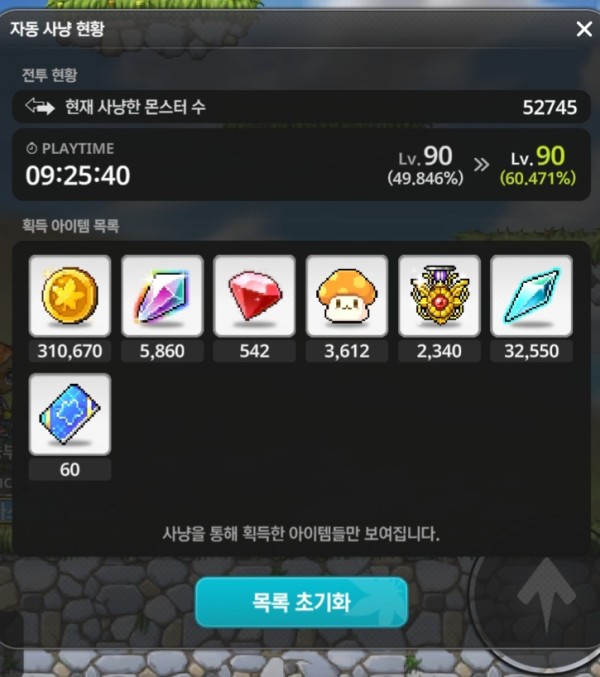 - 분당 100마리에는 살짝 못 미치지만 시간당 경험치 효율이 0.5% 이상이니 꽤 준수합니다! 👍