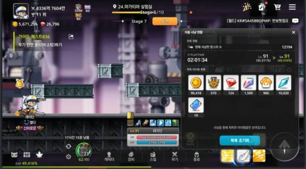 - 획득 경험치: 3.905% (49.416% - 45.511%)