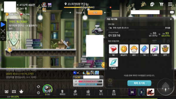 - 획득 경험치: 1.222% (89.019% - 87.797%)