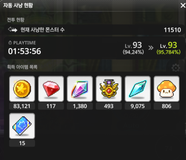 📊 Lv.93 사냥 분석 결과
