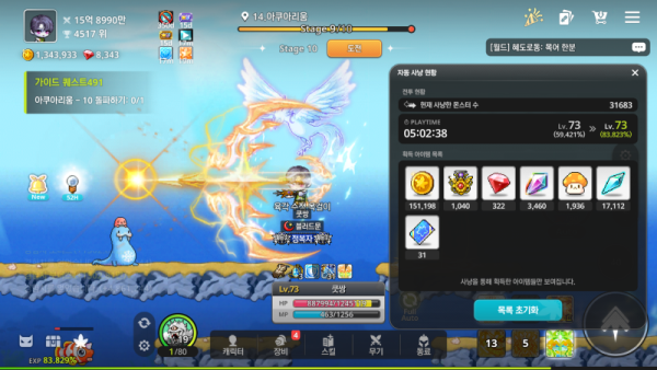 - 크으... 장시간 사냥하신 기록이군요! 5시간 넘게 켜두셨다니, 진정한 방치형 게임 유저시네요!
