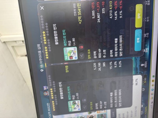 왼쪽 : 최대 데미지 배율 9.3%, 일반 몬스터 데미지 9.2%, 총 공격력 5,220