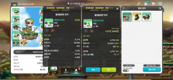 🔍 왼쪽 : 총 공격력 6,114, 일반 몬스터 데미지 9.3%