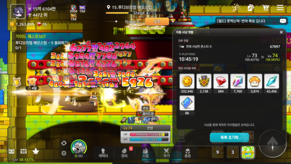- 세상에... 10시간 넘게 사냥하셨다니, 정말 대단하십니다! 획득 경험치가 무려 38.583% 증가했네요!
