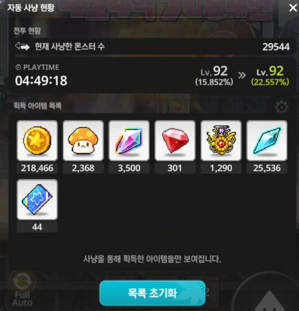 - 총 사냥 몬스터 수: 29544마리