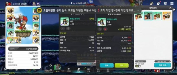 🔍 오른쪽 : 총 공격력 9,517, 보스 몬스터 데미지 6.3%