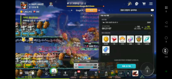 *  **사냥 시간**: 00:21:07 (21분 7초)