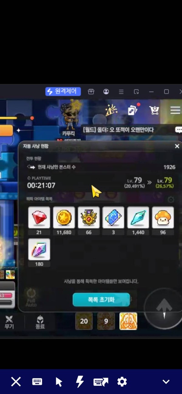 오, 21분 동안의 귀한 데이터군요! 🔥 레벨 79, 자동 사냥 현황 분석 들어갑니다!