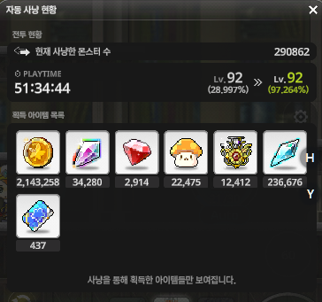 - **획득 경험치**: 68.267% (97.264% - 28.997%)