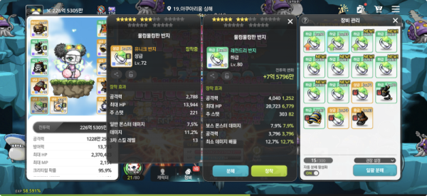 왼쪽 : 일반 몬스터 데미지 7.5%, 데미지 11.2%, 총 공격력 2,788