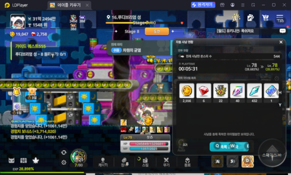 - 획득 경험치: 0.214% (28.897% - 28.683%)