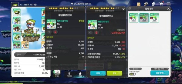 왼쪽 : 총 공격력 11,503, 3차 스킬 레벨 +17