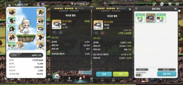 🔍 🔥오른쪽 : 총 공격력 6,485, 보스 몬스터 데미지 6.1%