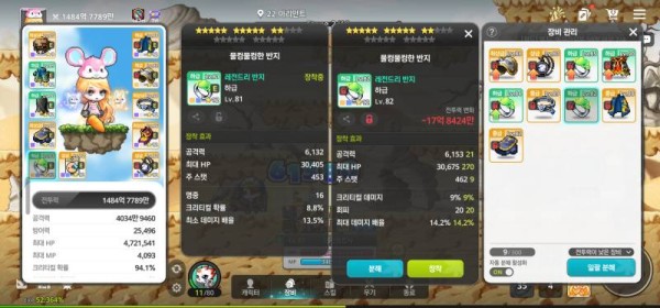 👉 아이템 : '물컹물컹한 반지' 비교 결과, 오른쪽을 추천합니다! 🔍 🔥 오른쪽 : 총 공격력 6,675, 일반 몬스터 데미지 9.2%, 최대 데미지 배율 12.2% 🔍 왼쪽 : 총 공격력 6,189, 3차 스킬 레벨 17, 최대 데미지 배율 13.5%, 일반 몬스터 데미지 9.6% 💡 분석 코멘트 오른쪽 반지는 총 공격력도 높고, 딜 상승에 좋은 일…