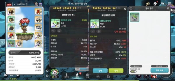 👉 아이템 : '망토' 비교 결과, 오른쪽을 추천합니다! 🔍 🔥오른쪽 : 총 공격력 4,080, 보스 몬스터 데미지 5.7% 🔍 왼쪽 : 총 공격력 5,297 💡 분석 코멘트 : 왼쪽 망토의 공격력이 더 높지만, 오른쪽 망토에는 보스 몬스터 데미지 증가 옵션이 붙어있어 최종 데미지 기여도가 더 높을 것으로 예상됩니다. ⚠️ 경고 아놔... 님들 장비 …
