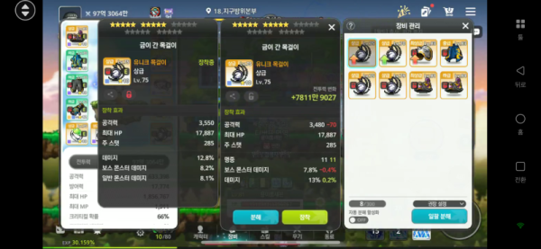 🔍 🔥오른쪽 : 총 공격력 3,480, 데미지 13%, 보스 몬스터 데미지 7.8%