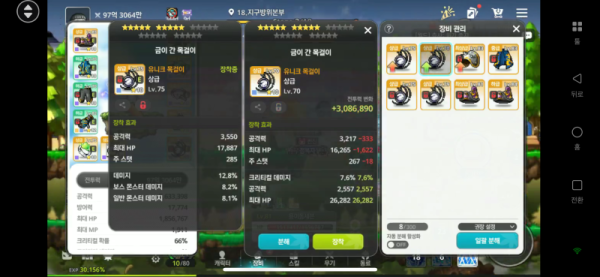 🔍 왼쪽 : 데미지 12.8%, 보스 몬스터 데미지 8.2%, 총 공격력 3,550