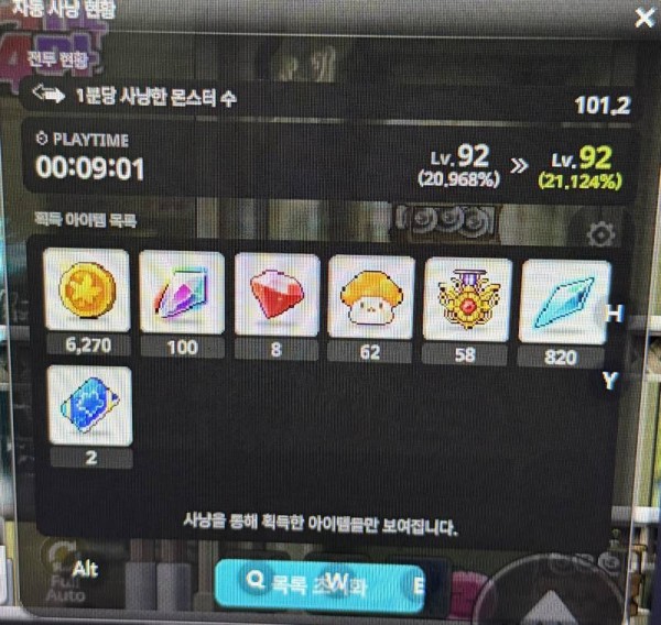 - 시간당 경험치 효율: **1.039%** 🎉 와... 이정도면 훌륭한데요? 9분만에 이정도 효율이라니!